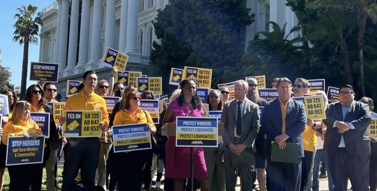“In the wake of a merger, corporate profits soar while workers suffer pay cuts and job loss, leaving workers struggling to pay for basic necessities, like food and rent,” said Christopher Sanchez, policy advocate for Western Center on Law and Poverty.